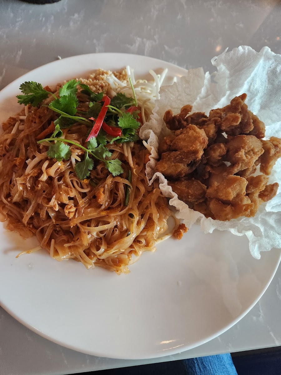 “ The food and cocktails here are excellent! I had the Thai tea martini and the pork belly pad Thai and it was all delicious. Their spicy scale was a bit more gentle than other places, but they brought out a couple chili powders/pastes for adding additional spice, which was appreciated. We had no complaints with the service, everything was quick and friendly and the waiter was attentive. But, aside from offering a plastic water cup, we did not find the bistro to be very kid-friendly. Our toddler just ate off of one of the appetizer plates, which worked out fine really. Giving five stars because the food and service was excellent, but we were unpleasantly surprised to find the gratuity added to the check automatically. We do not prefer this method, but we would have tipped 20% anyway, so we left the total as it was printed on the check. ”