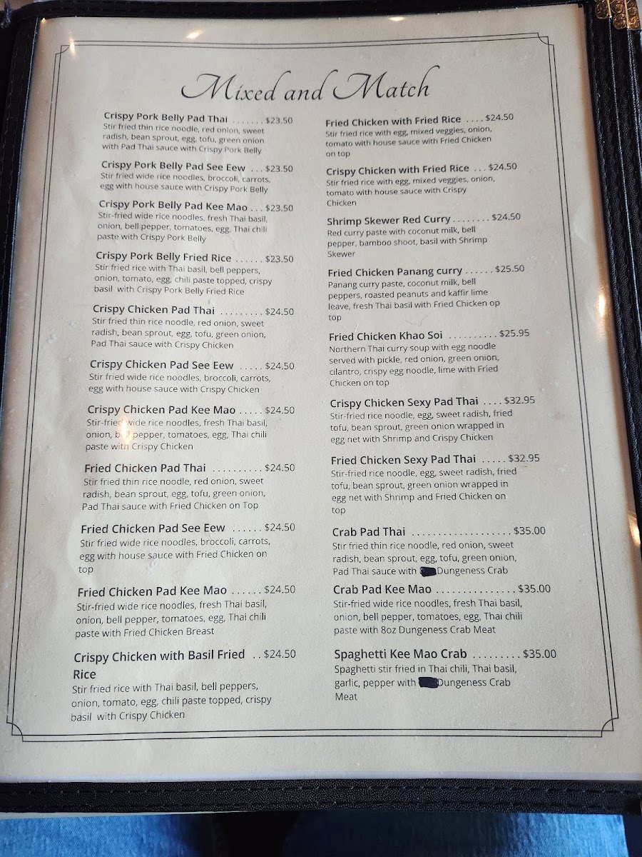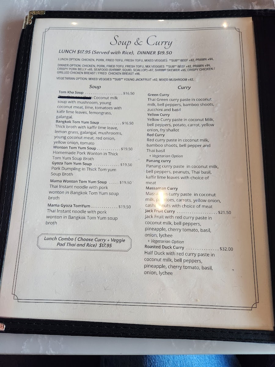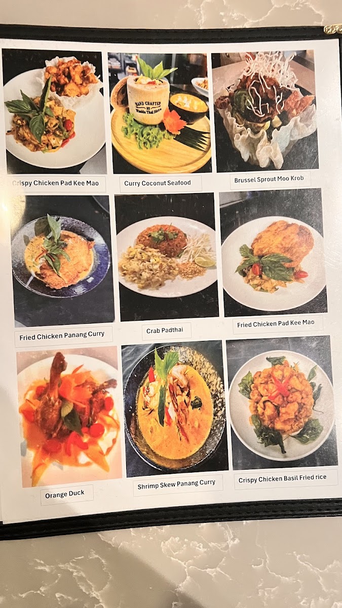 Panang curry in coconut milk, bell pepper, peanuts, Thai basil, kaffir lime leaves with choice of meat