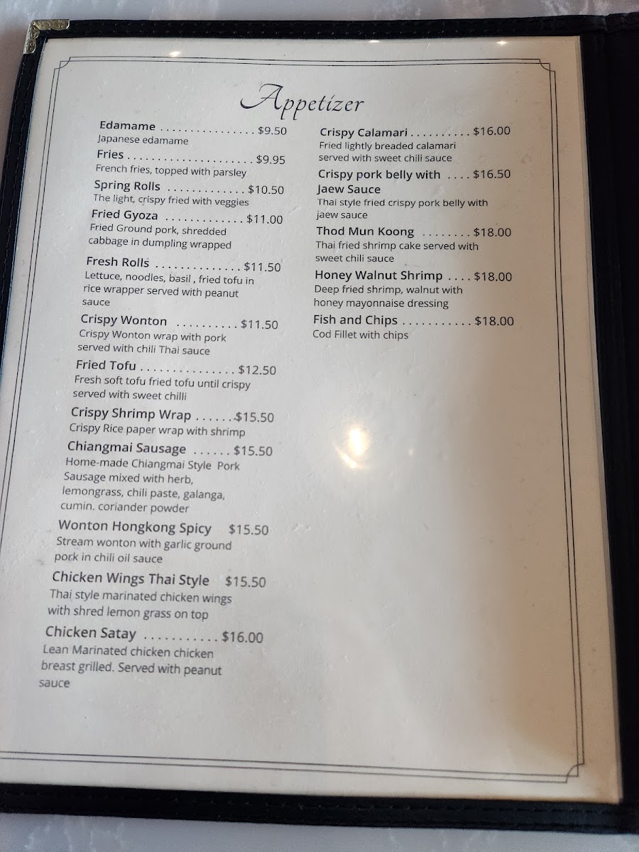 Stir fried choice of meat with fresh Thai basil, bell pepper, onion, green bean and chili pepper
