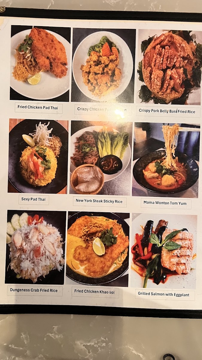 Ground chicken or pork stir fried with fresh Thai chill, garlic, onion, bell pepper served with fried egg on top.